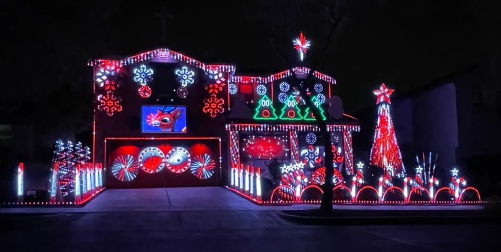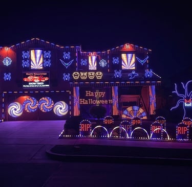 Months of trial and error followed — building two F16 controllers (including a 16-port expansion), figuring out prop mounting without drilling into stucco (a non-negotiable.) Eventually Jeff purchased 10,000 lights and multiple props that first year. The garage slowly turned into a workshop. The hobby turned into an obsession. And the obsession turned into a vision. By December 2019, the vision became reality.
